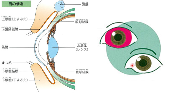 先日、右目の瞼辺りがチクチクするなぁと思いながら就寝。・・・で・・・翌朝、歯磨きのために鏡を覗き込むと、何と右眼の目玉の上下が出血しているように真っ赤・・・何?これ?・・・と、慌てて職場に連絡を入れ速攻診察へ・・・